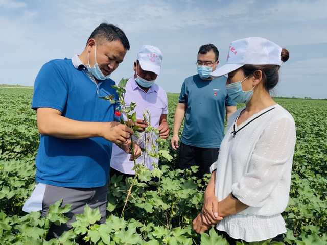 概论课教研室党支部党员在了解棉花打顶方法
